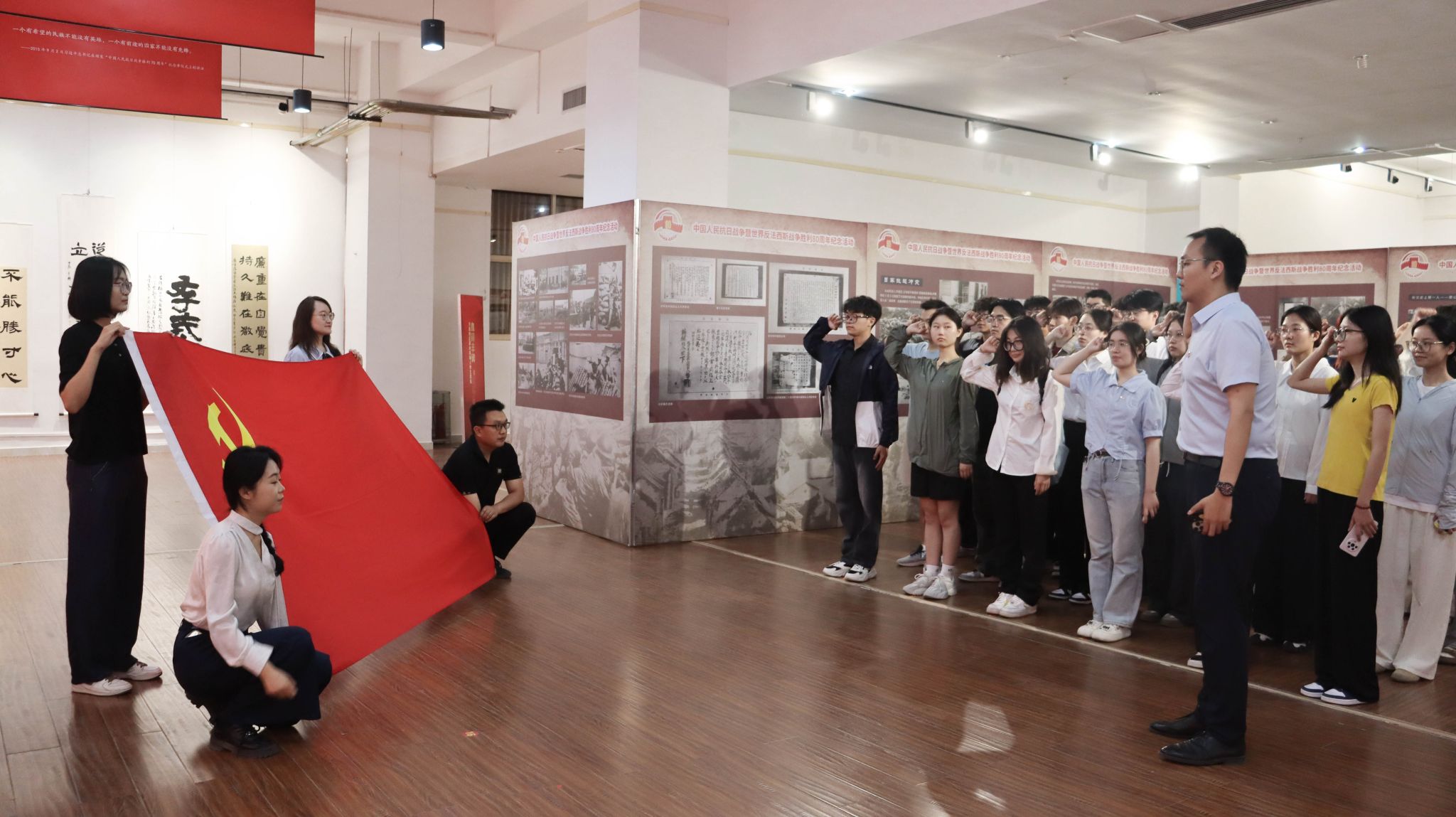 參觀結(jié)束后,全體黨員面向鮮紅的黨旗,舉起右拳,莊嚴宣誓。鏗鏘的誓言、堅定的承諾,飽含著對黨的無限忠誠與熱愛,更宣示了黨員們堅定不移的政治信念和矢志不渝的奮斗決心。