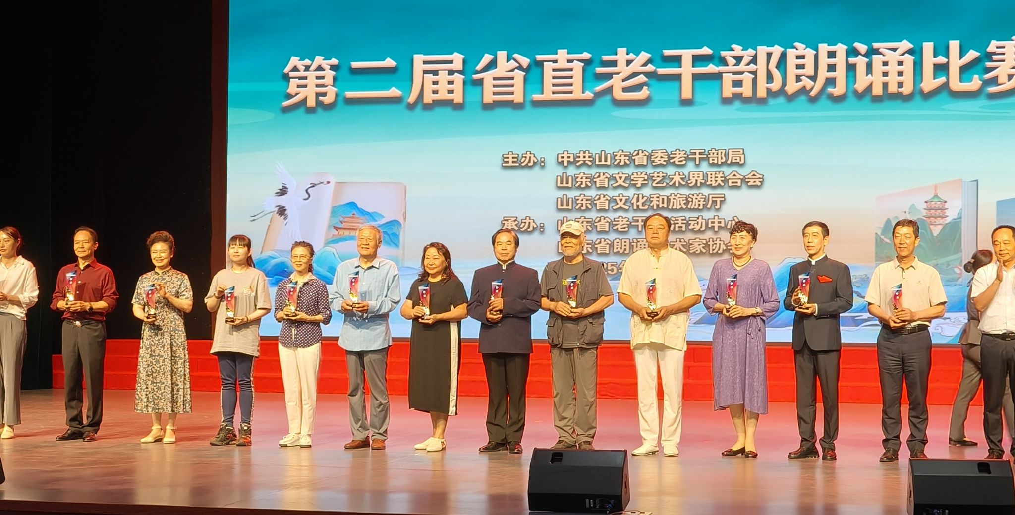 本次比賽由山東省委老干部局主辦,匯聚了省直機關(guān)及高校等眾多朗誦精英。周礫老師以《班佑河邊的紅軍雕塑》為參賽作品,靠著極具感染力的現(xiàn)場表現(xiàn)將文字中蘊藏的磅礴力量與深沉情感演繹得淋漓盡致。當那飽含歲月沉淀又充滿生命韌性的聲音在賽場回響,令全場觀眾為之屏息動容。她以聲音為橋梁,生動詮釋了經(jīng)典作品的不朽魅力,更以自身風范展示了我校老同志蓬勃的文化活力與不竭的藝術(shù)激情。