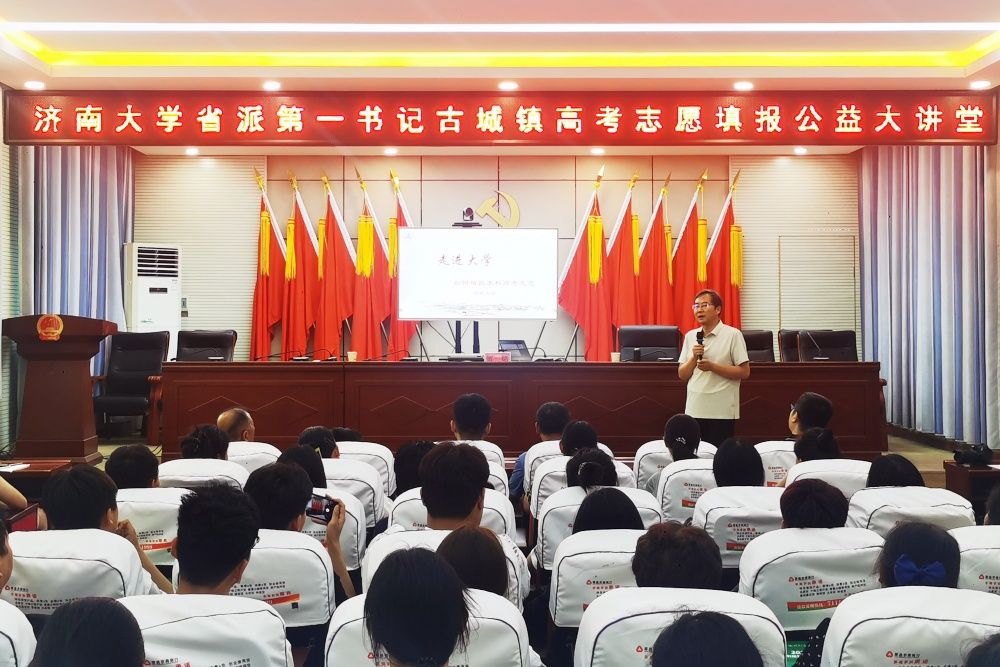 為破解高考志愿填報難題,助力學(xué)子科學(xué)規(guī)劃升學(xué)之路,6月28日,濟南大學(xué)省派駐村第一書記舉辦古城鎮(zhèn)高考志愿填報公益大講堂活動。本次活動由濟南大學(xué)省派駐村第一書記牽線搭橋,邀請濟南大學(xué)化學(xué)化工學(xué)院黨委書記賀銘、濟南大學(xué)招生辦公室考試招生科科長田傳民,為古城鎮(zhèn)的高考學(xué)子進行高考填報志愿指導(dǎo)和答疑解惑。古城鎮(zhèn)及周邊鄉(xiāng)鎮(zhèn)200余名學(xué)生與家長參加了活動。