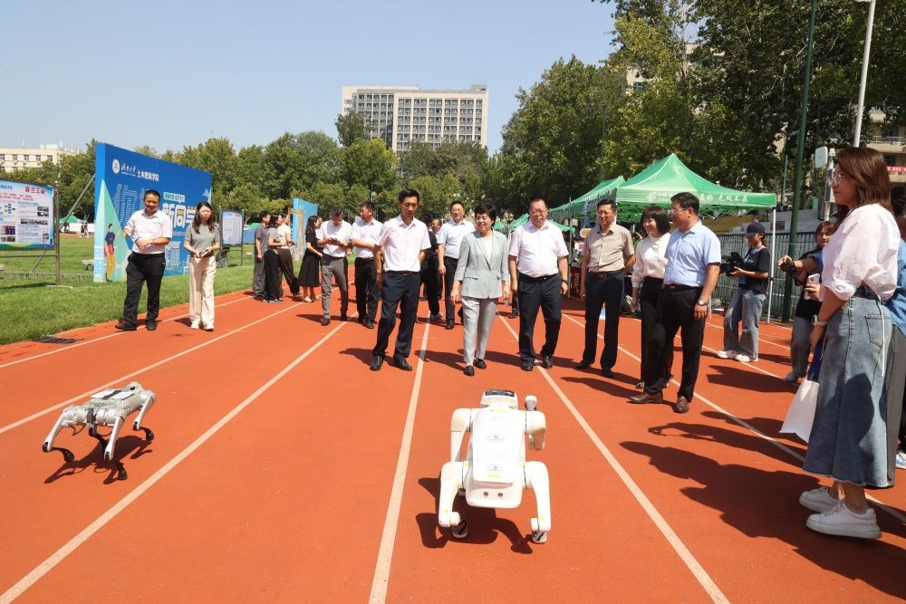 學院師生自主研發(fā)的“智能機器狗—小白”也來到了迎新現(xiàn)場,踢球、轉圈、握手,靈活的動作吸引了學生和家長上前互動?!靶“住钡木时憩F(xiàn),激發(fā)了新生對專業(yè)學習的興趣和熱情,也讓新生家長看到了機械學院在科技創(chuàng)新方面的實力和在人才培養(yǎng)方面的成果,對學院的教育質量和學生的發(fā)展前景充滿了信心。