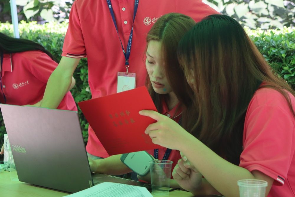 學(xué)院精心設(shè)計(jì)了富有特色的互動(dòng)展示板,懸掛別具匠心的裝飾標(biāo)語(yǔ),用心打造了溫馨、有序的入學(xué)環(huán)境,讓新生們初入校園就感受到學(xué)院的熱情與關(guān)懷。學(xué)院志愿者與班助團(tuán)隊(duì)協(xié)同完成線上線下的迎新工作,耐心解答疑問(wèn),分享經(jīng)驗(yàn),引導(dǎo)新生完成繳費(fèi)審核、身份核對(duì)、領(lǐng)取材料等流程,確保為新生提供全方位、全流程的引導(dǎo)與服務(wù)。報(bào)到流程井然有序、規(guī)范高效,贏得了廣大新生及家長(zhǎng)的一致認(rèn)可。