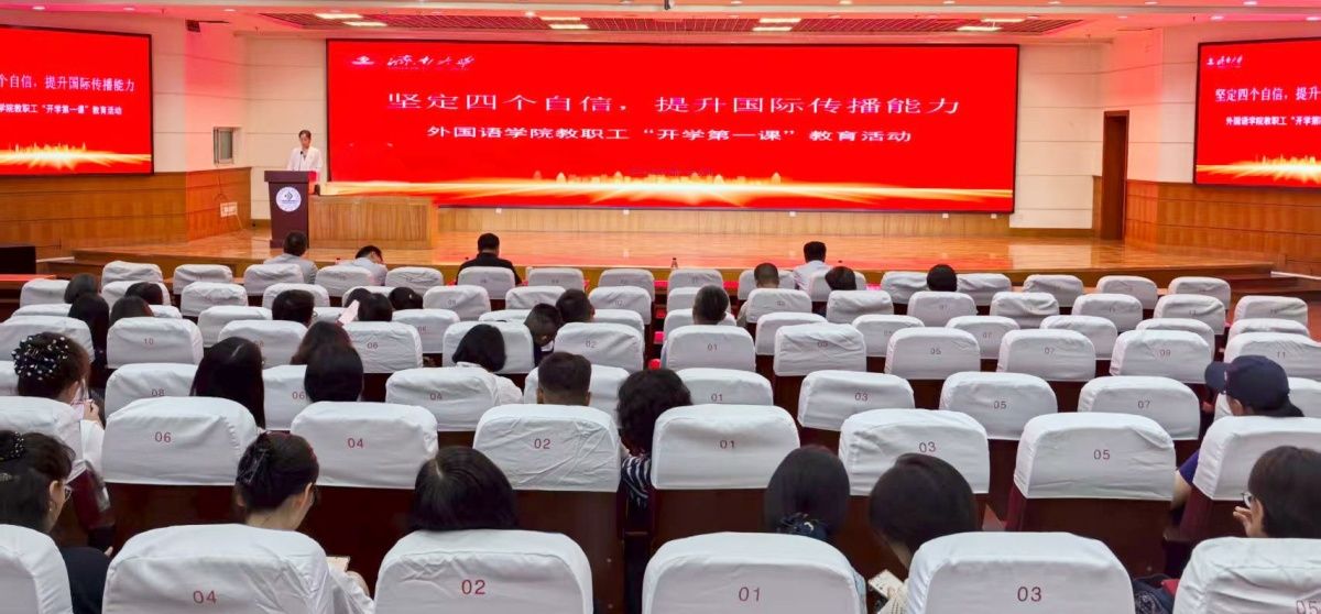 為進(jìn)一步深化思想認(rèn)識,凝聚奮進(jìn)力量,9月6日,外國語學(xué)院在第二學(xué)術(shù)報告廳舉行2025年秋季學(xué)期“開學(xué)第一課”暨全體教職工大會。活動邀請了中央黨校(國家行政學(xué)院)國際和港澳培訓(xùn)中心副主任、副研究員董明發(fā)作專題講座。