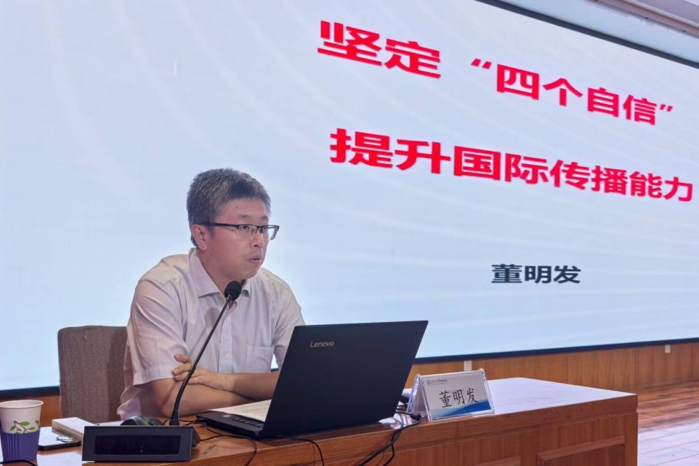 董明發(fā)以“堅定‘四個自信’,提升國際傳播能力”為題,從“四個自信”的歷史淵源和時代背景為切入點,系統(tǒng)梳理了其形成過程,并深刻闡釋了“四個自信”的理論內(nèi)涵與時代價值。他結(jié)合當(dāng)前國際形勢與我國對外傳播實踐,深入分析了提升國際傳播能力的重要性和緊迫性,提出了以“四個自信”為精神內(nèi)核,創(chuàng)新傳播理念、構(gòu)建話語體系、拓寬傳播渠道、夯實人才基礎(chǔ)的具體路徑,為講好中國故事、傳播中國聲音、展現(xiàn)可信可愛可敬的中國形象提供了堅實的理論支撐和實踐指引。