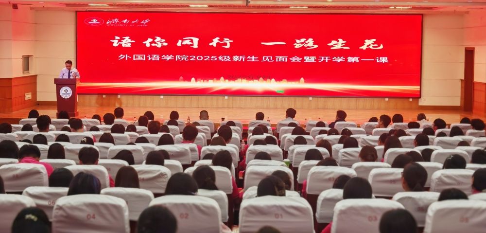 9月24日,外國(guó)語(yǔ)學(xué)院2025級(jí)新生見面會(huì)暨入學(xué)第一課在第二學(xué)術(shù)報(bào)告廳舉行。學(xué)院領(lǐng)導(dǎo)班子、各辦公室負(fù)責(zé)人、系部主任、輔導(dǎo)員、新生班主任及全體2025級(jí)本科新生參加活動(dòng)。2025級(jí)輔導(dǎo)員吳楊洋主持活動(dòng)。