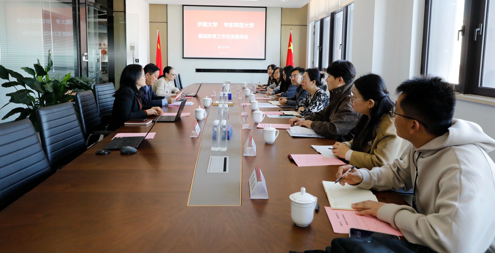 調(diào)研期間,雙方在華東師范大學普陀校區(qū)舉行座談。華東師范大學基礎教育處處長李志聰、副處長華春燕及相關負責人參加座談。李志聰對基礎教育中心一行的到訪表示歡迎,詳細介紹了華東師大基礎教育集團的基本情況、管理運行模式和辦學實踐。濟南大學基礎教育中心主任孫翔玲介紹了學校發(fā)展概況、中心及附屬學?;厩闆r以及目前附屬學校在師資隊伍建設、辦學質(zhì)量提升、資源支持等方面存在的現(xiàn)實問題和困惑。座談會上,雙方還圍繞教育集團運行機制、附屬學校規(guī)劃建設、教育科研、基礎教育品牌塑造等方面展開深入交流與探討。