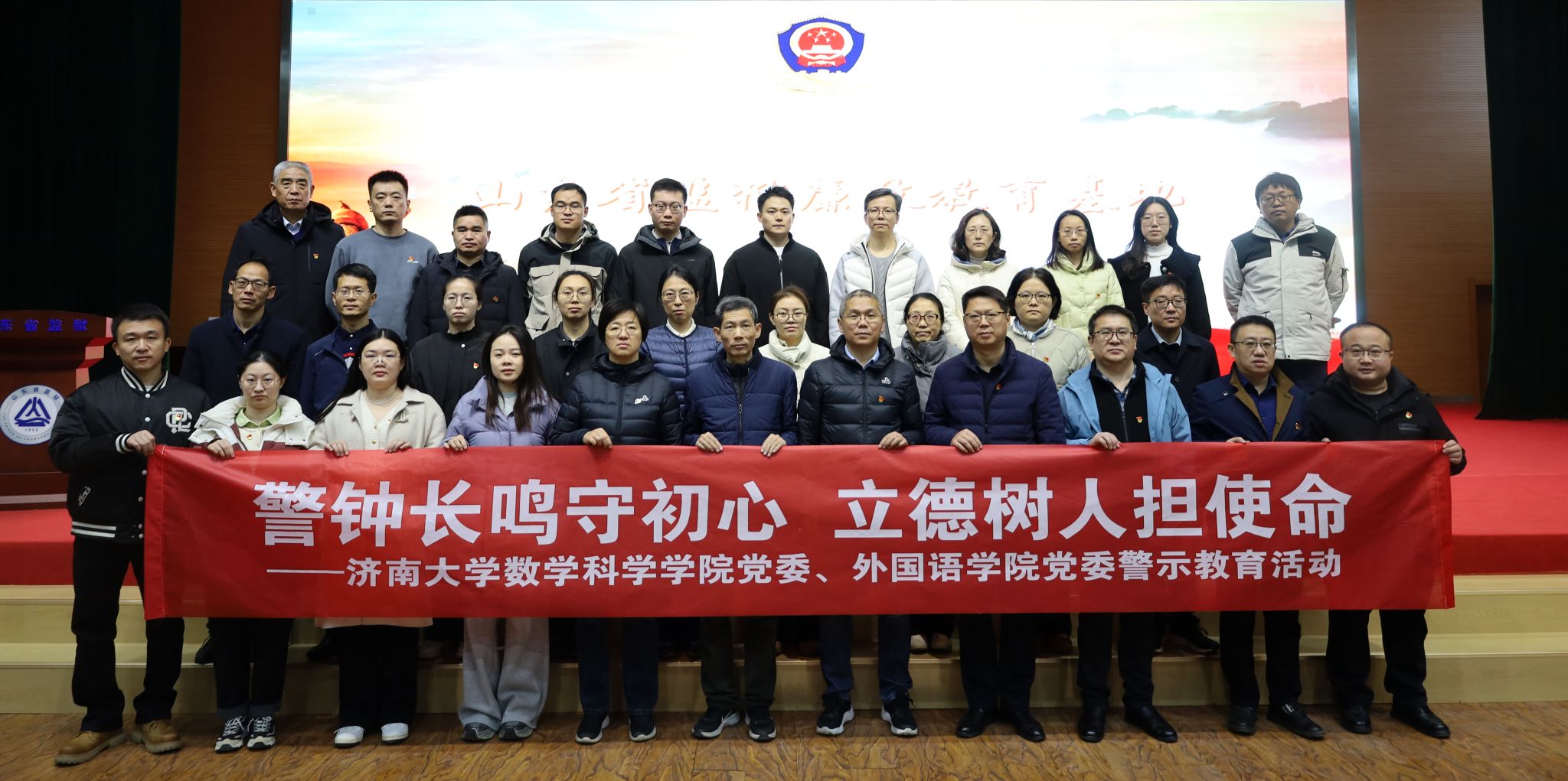 為進(jìn)一步強(qiáng)化黨員干部紀(jì)律規(guī)矩意識,發(fā)揮反面典型警示教育作用,切實筑牢黨員干部拒腐防變思想防線,11月27日上午,數(shù)學(xué)科學(xué)學(xué)院黨委與外國語學(xué)院黨委赴山東省監(jiān)獄聯(lián)合開展“警鐘長鳴守初心 立德樹人擔(dān)使命”警示教育活動。數(shù)學(xué)科學(xué)學(xué)院與外國語學(xué)院黨委班子成員和師生黨員代表、教師代表等30余人共同參加。