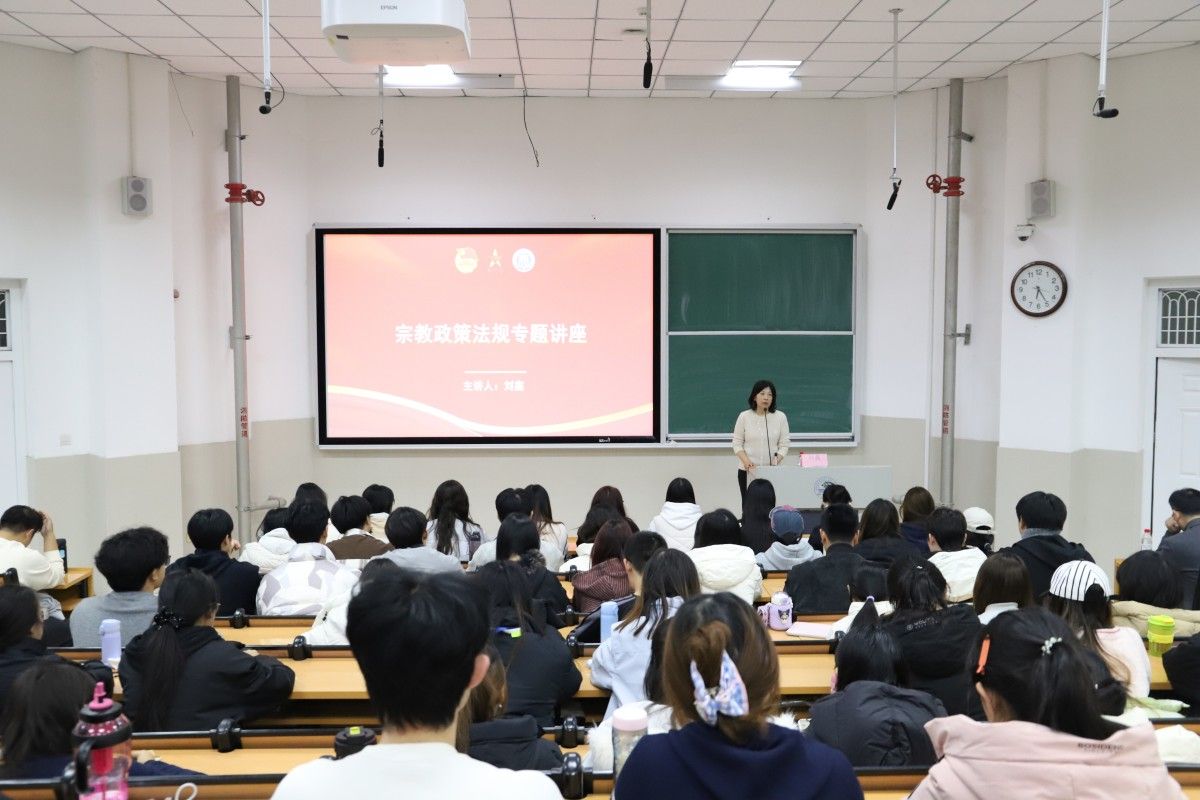 11月20日,學(xué)校黨委統(tǒng)戰(zhàn)部副部長、宗教事務(wù)辦公室副主任劉鑫應(yīng)邀為學(xué)員們開展宗教政策法規(guī)主題講座,圍繞習(xí)近平總書記關(guān)于宗教工作的重要論述,系統(tǒng)解讀黨的宗教工作基本方針的核心內(nèi)涵,引導(dǎo)團(tuán)員和青年牢固樹立馬克思主義宗教觀,自覺遵守國家法律法規(guī),提高法律意識(shí)和政治鑒別力,自覺筑牢思想防線。