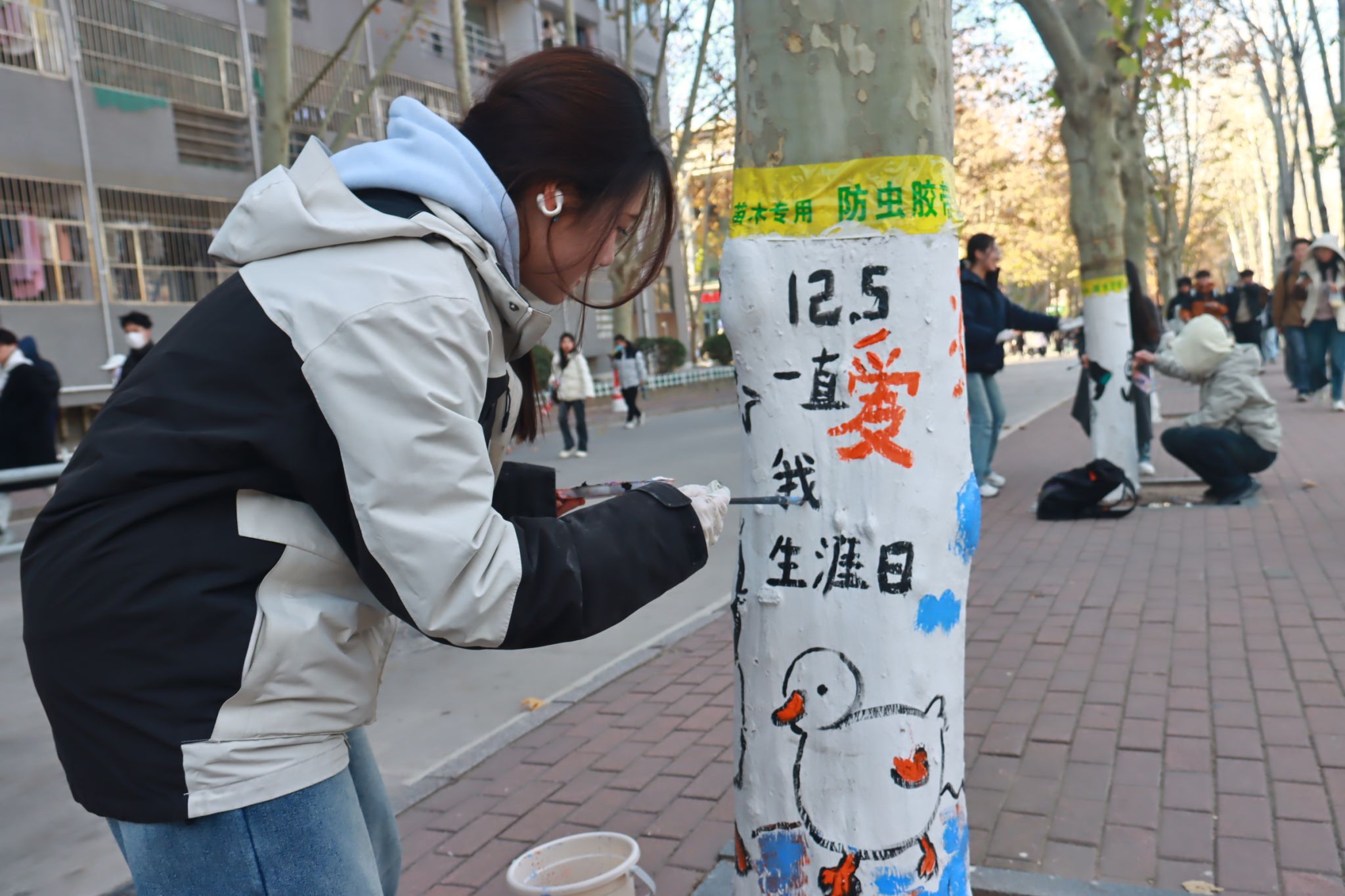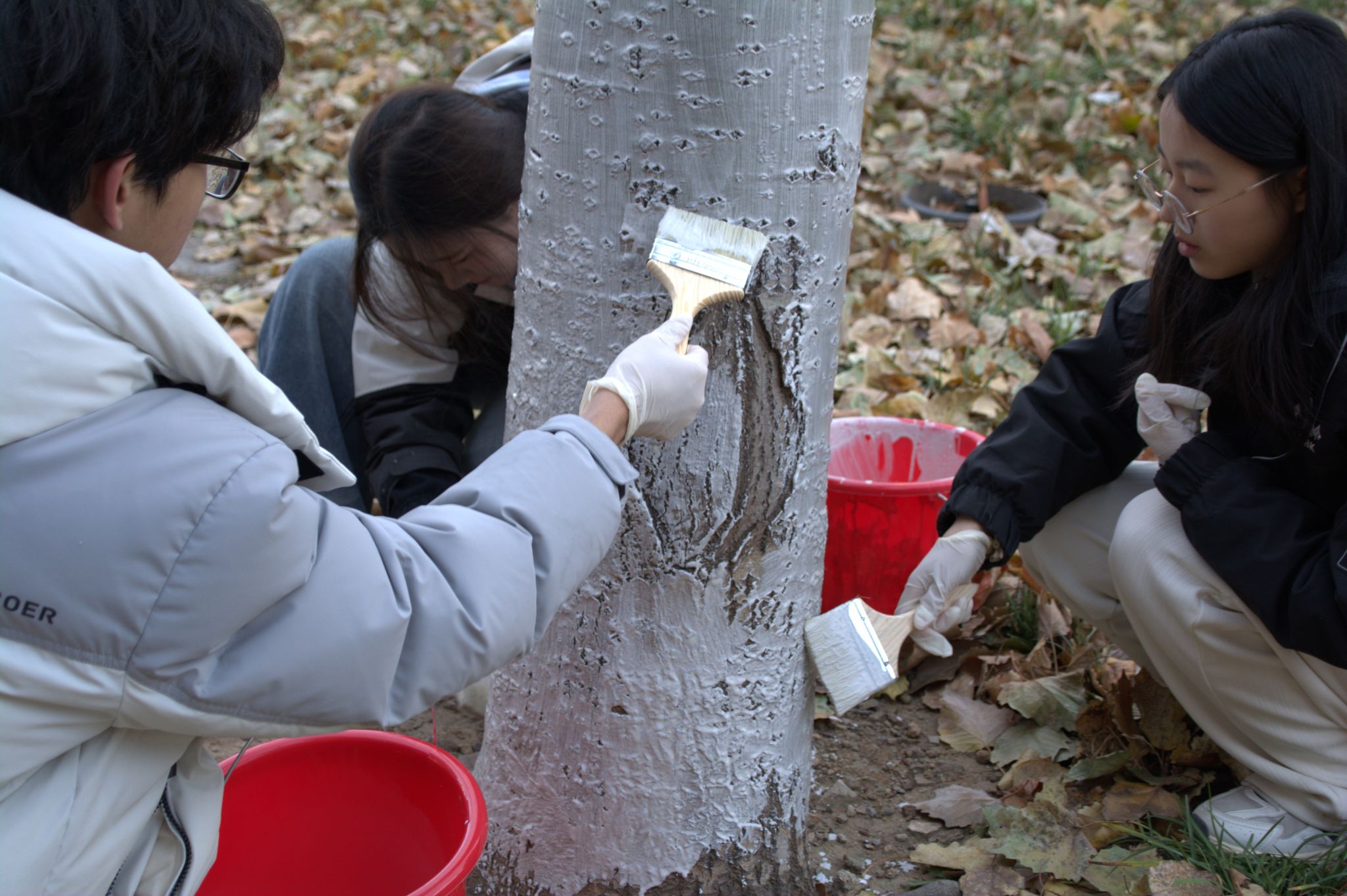 本次活動(dòng)整合校內(nèi)多方資源,融入五育并舉要素,精心設(shè)置知識(shí)講堂、勞動(dòng)實(shí)踐、藝美創(chuàng)作、政策講解、生涯啟思與心理療愈六大環(huán)節(jié)。知識(shí)講堂中,后勤管理處樹木養(yǎng)護(hù)專家講解樹木越冬的生態(tài)智慧和樹干“涂白”工藝的防蟲防凍原理及生態(tài)價(jià)值。隨后,學(xué)生分組進(jìn)行樹木涂白勞動(dòng),在協(xié)作中培養(yǎng)責(zé)任、體會(huì)勞動(dòng)光榮。藝術(shù)創(chuàng)作環(huán)節(jié),學(xué)生揮動(dòng)畫筆,用環(huán)保顏料在樹干上繪制主題彩繪,實(shí)現(xiàn)情感表達(dá)與美育實(shí)踐的有機(jī)融合。此外,學(xué)校資助管理中心、生涯指導(dǎo)中心與心理指導(dǎo)中心教師分別開(kāi)展政策講解、生涯啟思與正念冥想等活動(dòng),從資源支持、成長(zhǎng)規(guī)劃和心理關(guān)懷等多維度助力學(xué)生扎根生長(zhǎng)。整場(chǎng)活動(dòng)氣氛熱烈有序,學(xué)生在動(dòng)手實(shí)踐中學(xué)習(xí)知識(shí)、鍛煉能力、陶冶情操,實(shí)現(xiàn)了勞動(dòng)鍛煉、藝術(shù)創(chuàng)造與心靈成長(zhǎng)的多重收獲。