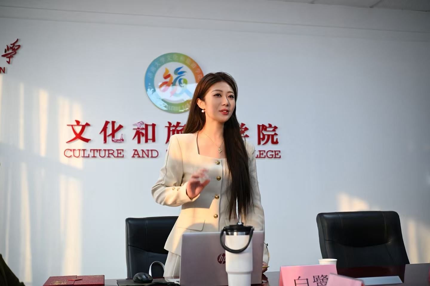 劉磊院長在致辭中指出,文化產(chǎn)業(yè)管理專業(yè)始終堅持開放辦學,積極推動產(chǎn)教融合,同學們應珍惜與業(yè)內(nèi)頂尖人士交流的寶貴機會,努力成為“能說、會寫、善策劃、懂管理”的復合型人才。隨后,他為白鷺頒發(fā)了學院的行業(yè)導師聘書。