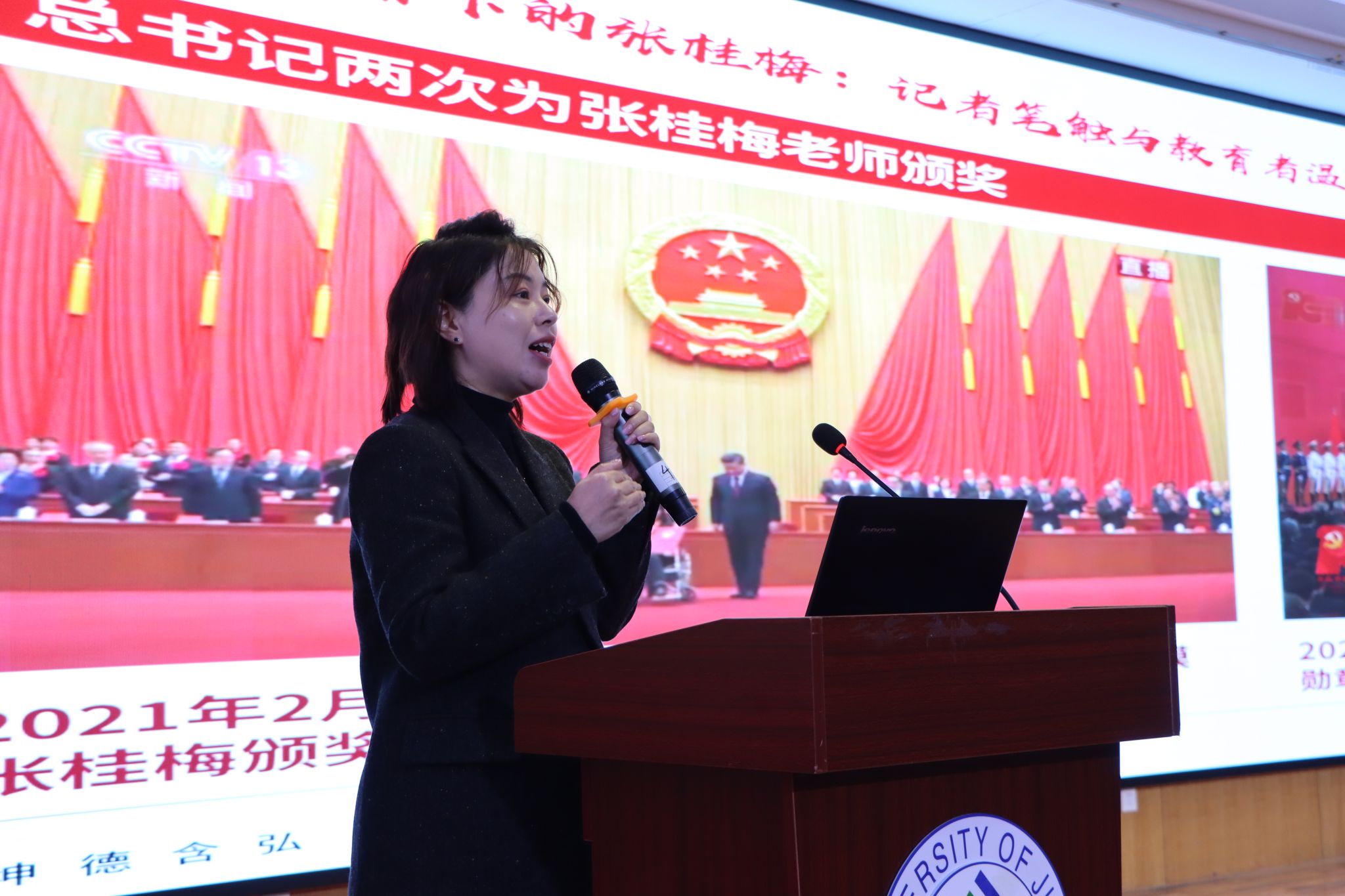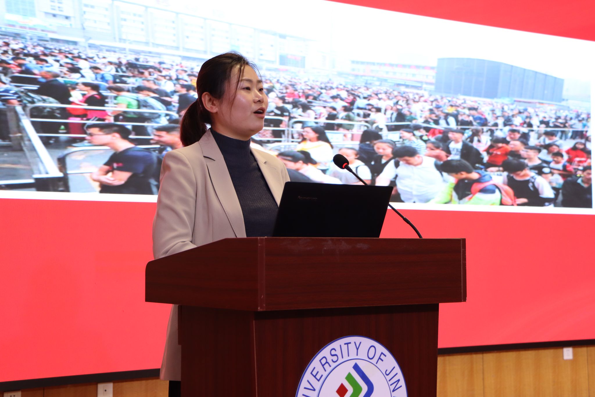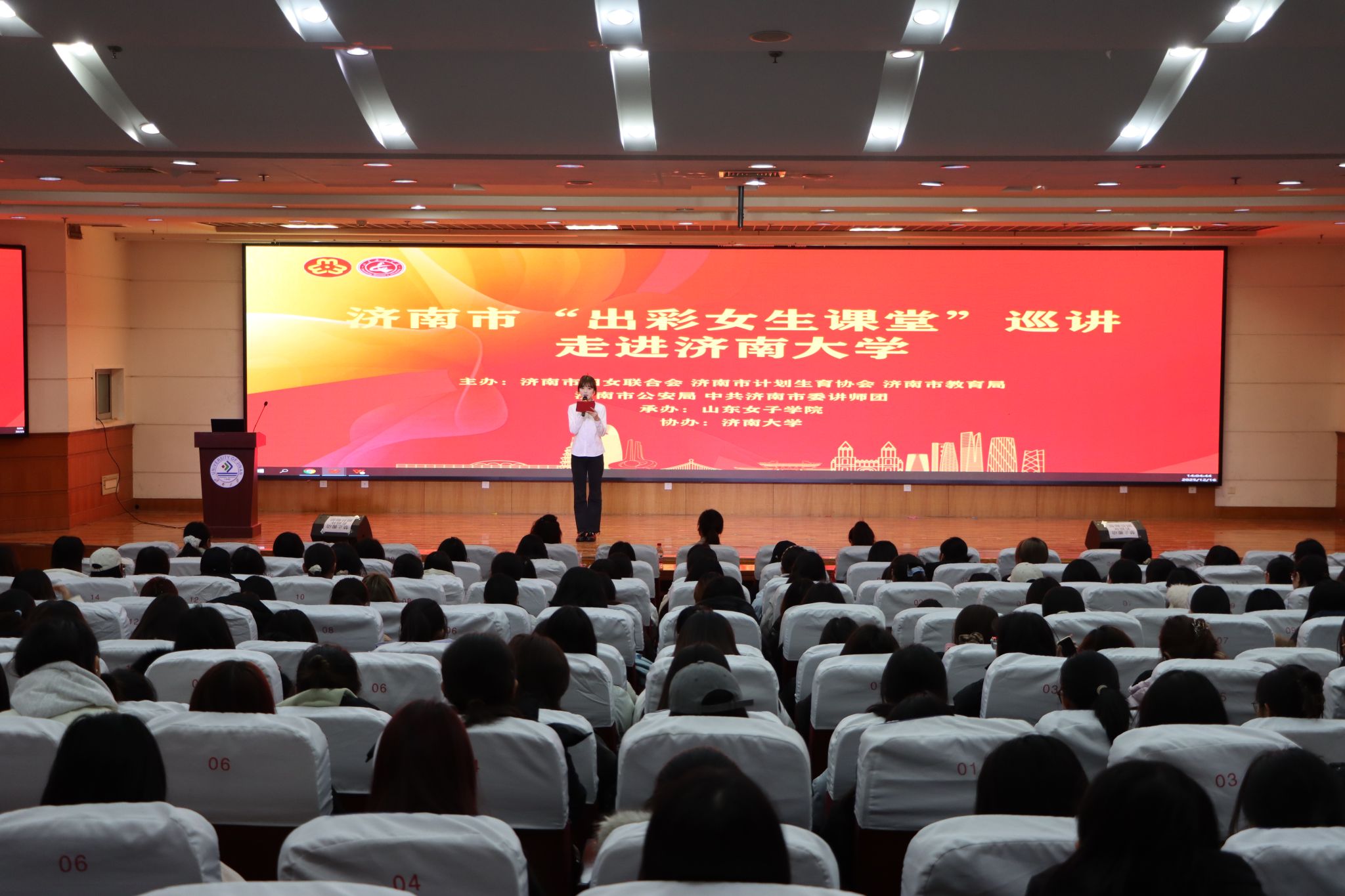12月16日,2025年濟南市“出彩女生課堂”巡講活動走進濟南大學,濟南大學外國語學院300余名女大學生參加活動。