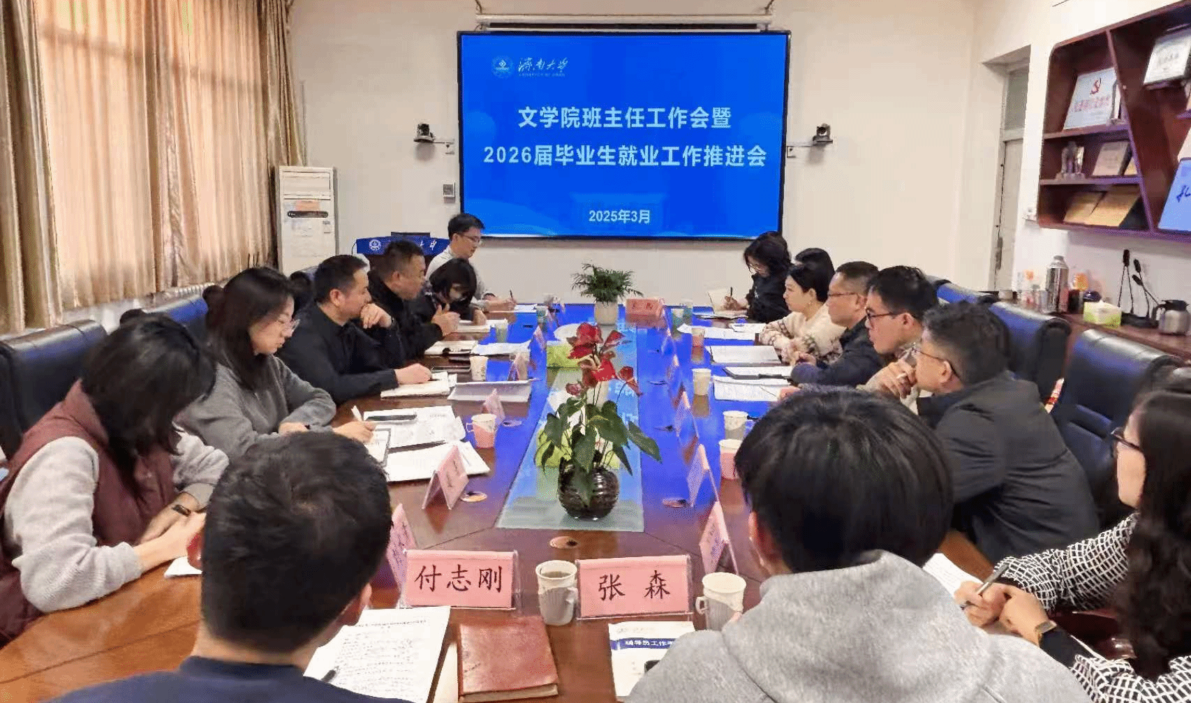 為進(jìn)一步落實(shí)立德樹人根本任務(wù)、強(qiáng)化班主任隊(duì)伍建設(shè)、統(tǒng)籌推進(jìn)畢業(yè)生就業(yè)工作,1月20日,文學(xué)院于3教411教室召開班主任工作會(huì)暨2026屆畢業(yè)生就業(yè)工作推進(jìn)會(huì)。學(xué)校黨委保衛(wèi)部、安全管理處部(處)長(zhǎng)李榮光,學(xué)院黨委書記朱海龍,學(xué)院黨委副書記、副院長(zhǎng)潘穎,以及學(xué)院全體班主任、輔導(dǎo)員參加會(huì)議。