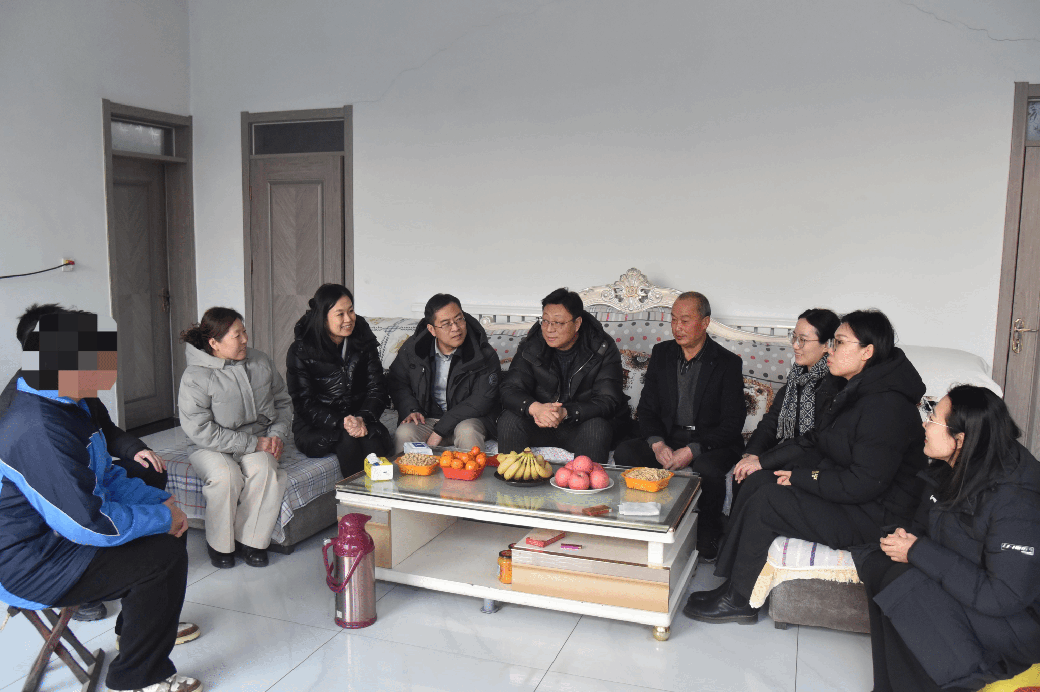 學院一行先后走訪了位于濟南市濟陽區(qū)和濱州市陽信縣的邢同學和蘇同學的家庭。學院領導、老師、校友們深入了解學生家庭收入來源和生活情況,向家長反饋了學生在校期間的學習表現(xiàn),并結合專業(yè)特點,一起探討了學生的學業(yè)規(guī)劃和未來發(fā)展。曾受家訪幫扶的優(yōu)秀校友姬廣蓬結合自身成長經(jīng)歷,勉勵學弟學妹們要珍惜韶華,不畏艱難,奮力拼搏,實現(xiàn)“受助-自助-助人”的愛心接力。李超代表學院為學生家庭送上慰問金與新年慰問品,將學校學院的深切關懷、暖心問候與新春祝福傳遞給家長與學生。