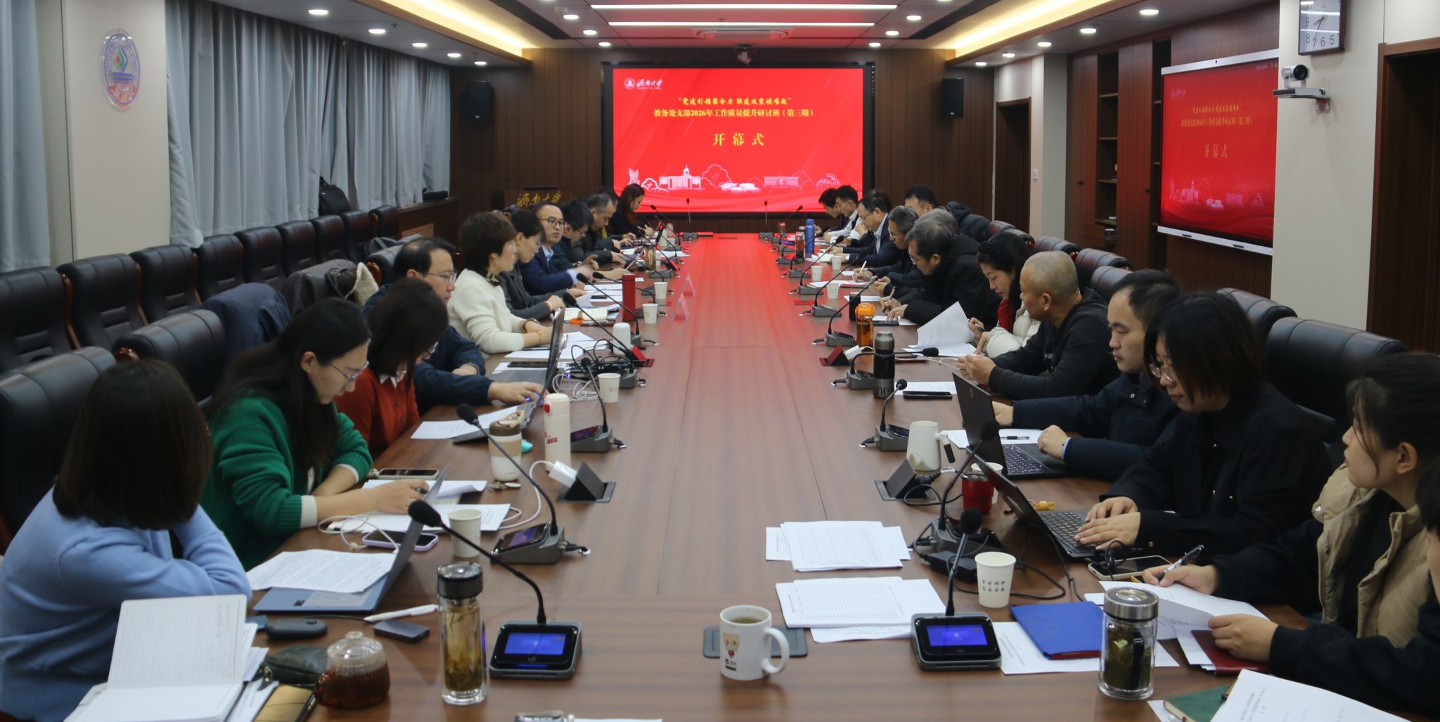 為深入學(xué)習(xí)貫徹習(xí)近平總書記關(guān)于教育的重要論述及黨的二十大和二十屆歷次全會精神,全面落實全國、全省教育工作會議要求,推動高校黨建“一融雙高”工作落地見效,濟南大學(xué)教務(wù)處黨支部近日舉辦“黨建引領(lǐng)聚合力 聯(lián)建攻堅破難題”第三期工作質(zhì)量提升研討班。機關(guān)黨委書記劉芝參加研討班開幕式并講話,教師工作部、人力資源處、各學(xué)院黨支部成員代表及教務(wù)處黨支部全體黨員、部門工作人員參會。