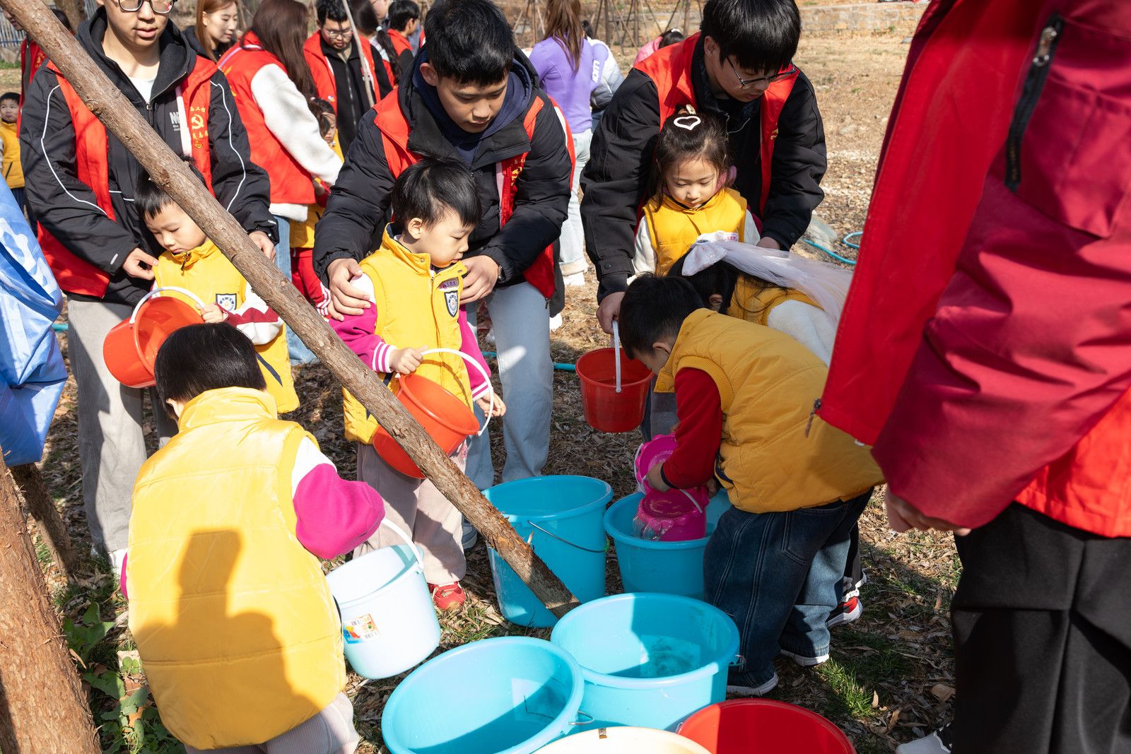 最是春光關(guān)不住,護(hù)綠實(shí)踐正當(dāng)時(shí)。大學(xué)生志愿者們帶領(lǐng)小朋友們重返去年的植樹基地,開展了一場(chǎng)別開生面的“領(lǐng)養(yǎng)與維護(hù)”行動(dòng)。志愿者們與孩子們并肩勞作,手持水桶與鐵鍬,細(xì)心地為去年栽種的樹苗除草、松土、澆水。在勞動(dòng)的過程中,大學(xué)生志愿者們耐心地向孩子們講解樹木的生長(zhǎng)周期,引導(dǎo)他們觀察自然界的細(xì)微變化和小樹經(jīng)過一年風(fēng)雨后的生長(zhǎng)情況。這種“大手牽小手”的互動(dòng)模式,不僅讓孩子們?cè)趯?shí)踐中體驗(yàn)了勞動(dòng)的辛勤與快樂,更在潛移默化中將愛護(hù)自然、保護(hù)環(huán)境的生態(tài)理念深深植根于孩子們的心中。