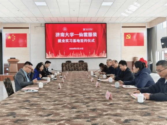 在山東仙霞服裝有限公司,副董事長張福生對學院一行到來表示熱烈歡迎,并介紹了企業(yè)發(fā)展歷程、產(chǎn)業(yè)布局、人才需求及未來規(guī)劃。陳春鋒結(jié)合學院發(fā)展歷程、專業(yè)設(shè)置、師資力量、人才培養(yǎng)特色以及2026屆畢業(yè)生基本情況,介紹學院近年來在實踐教學、校企協(xié)同和服務(wù)社會等方面的工作成效。她談到,學院結(jié)合學科專業(yè)優(yōu)勢,緊扣學校就業(yè)工作部署,進一步深化與企業(yè)合作對接,推動人才培養(yǎng)與行業(yè)需求同頻共振,更好服務(wù)學生成長成才和高質(zhì)量就業(yè)。董俊杰從學校就業(yè)工作整體布局上作介紹。他指出,學校始終把畢業(yè)生就業(yè)工作擺在突出位置,持續(xù)將校院工作一體化模式落到實處,形成“領(lǐng)導抓、教師推、校友幫、輔導員促”的四級就業(yè)助推體系。希望雙方以此次交流為契機,在就業(yè)實習基地建設(shè)、崗位資源共享、人才供需對接等方面開展更加務(wù)實深入的合作,共同推動校企協(xié)同育人取得更大成效。