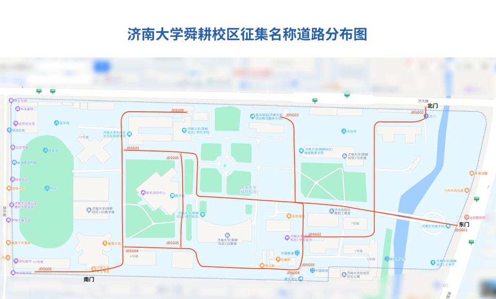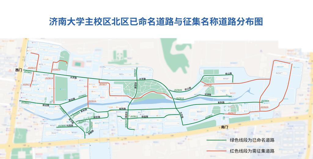 本次征集命名涉及濟(jì)南大學(xué)主校區(qū)(北區(qū)9條、南區(qū)7條)、舜耕校區(qū)(6條)的道路共22條。