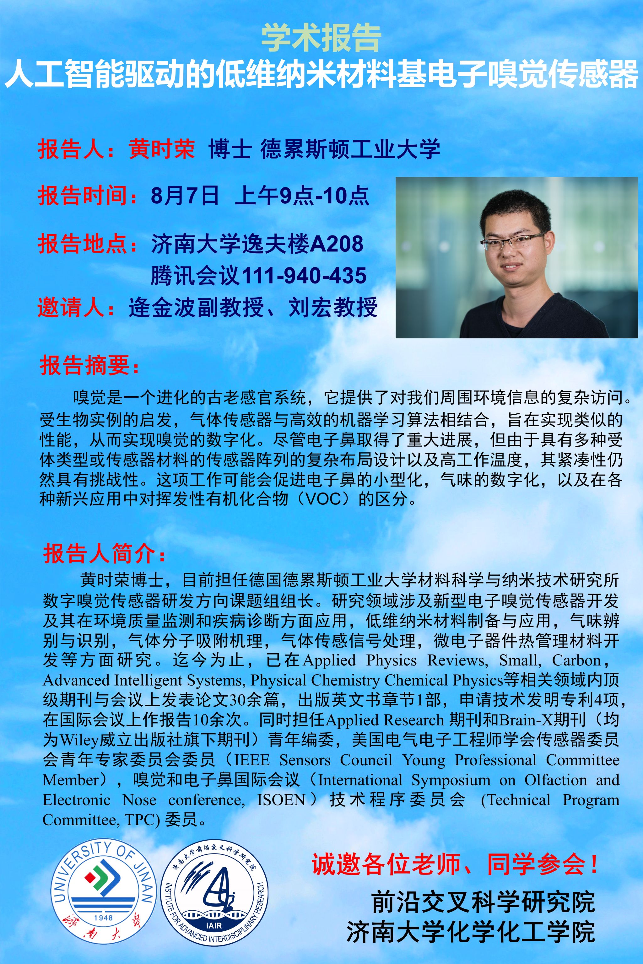主 題:人工智能驅(qū)動的低維納米材料基電子嗅覺傳感器