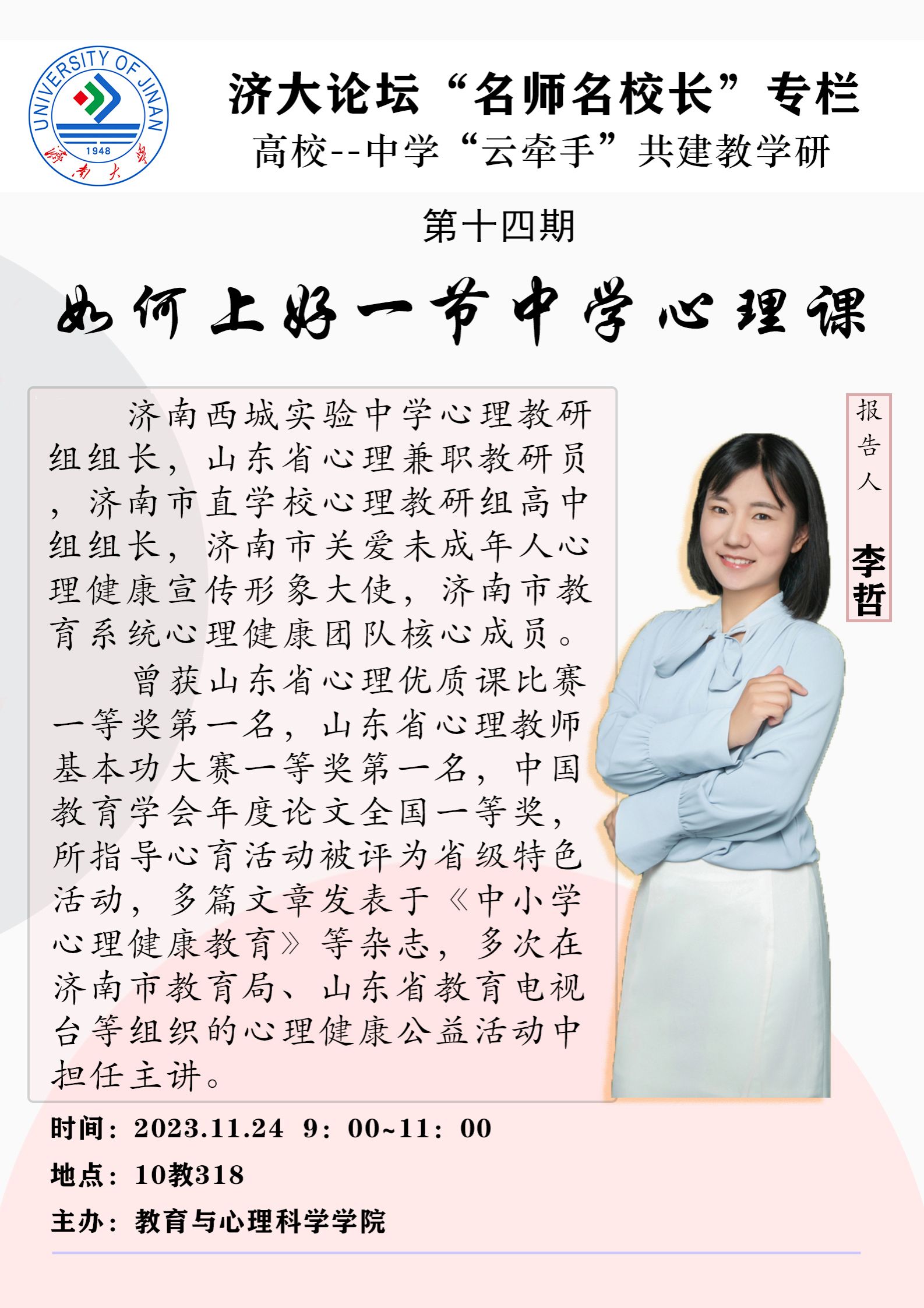 濟(jì)大論壇“名師名校長”專欄第十四期:如何上好一節(jié)中學(xué)心理課