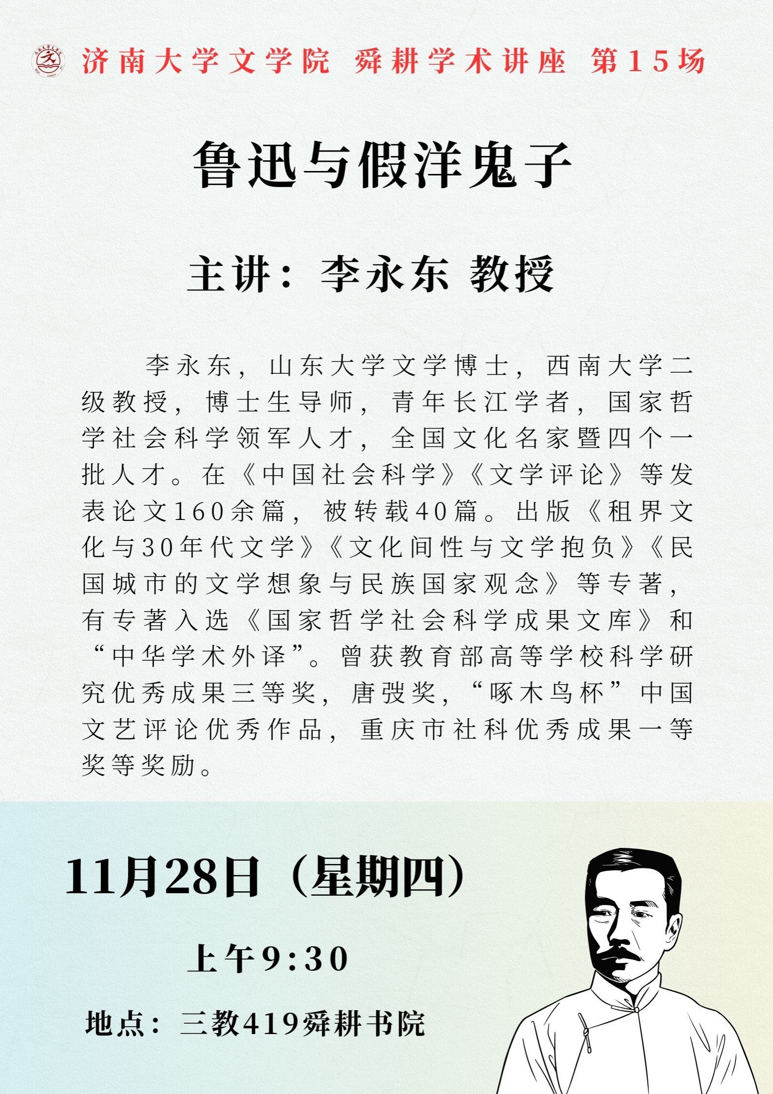 學術海報:文學院舜耕學術講座——魯迅與假洋鬼子