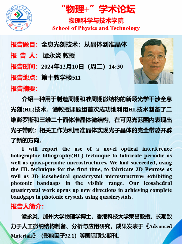 “物理+”學術(shù)論壇:全息光刻技術(shù)-從晶體到準晶體