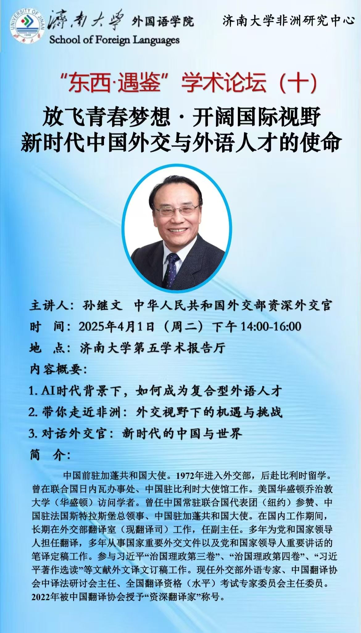 外國語學(xué)院學(xué)術(shù)論壇:開闊國際視野,放飛青春夢想,新時代中國外交與外語人才的使命