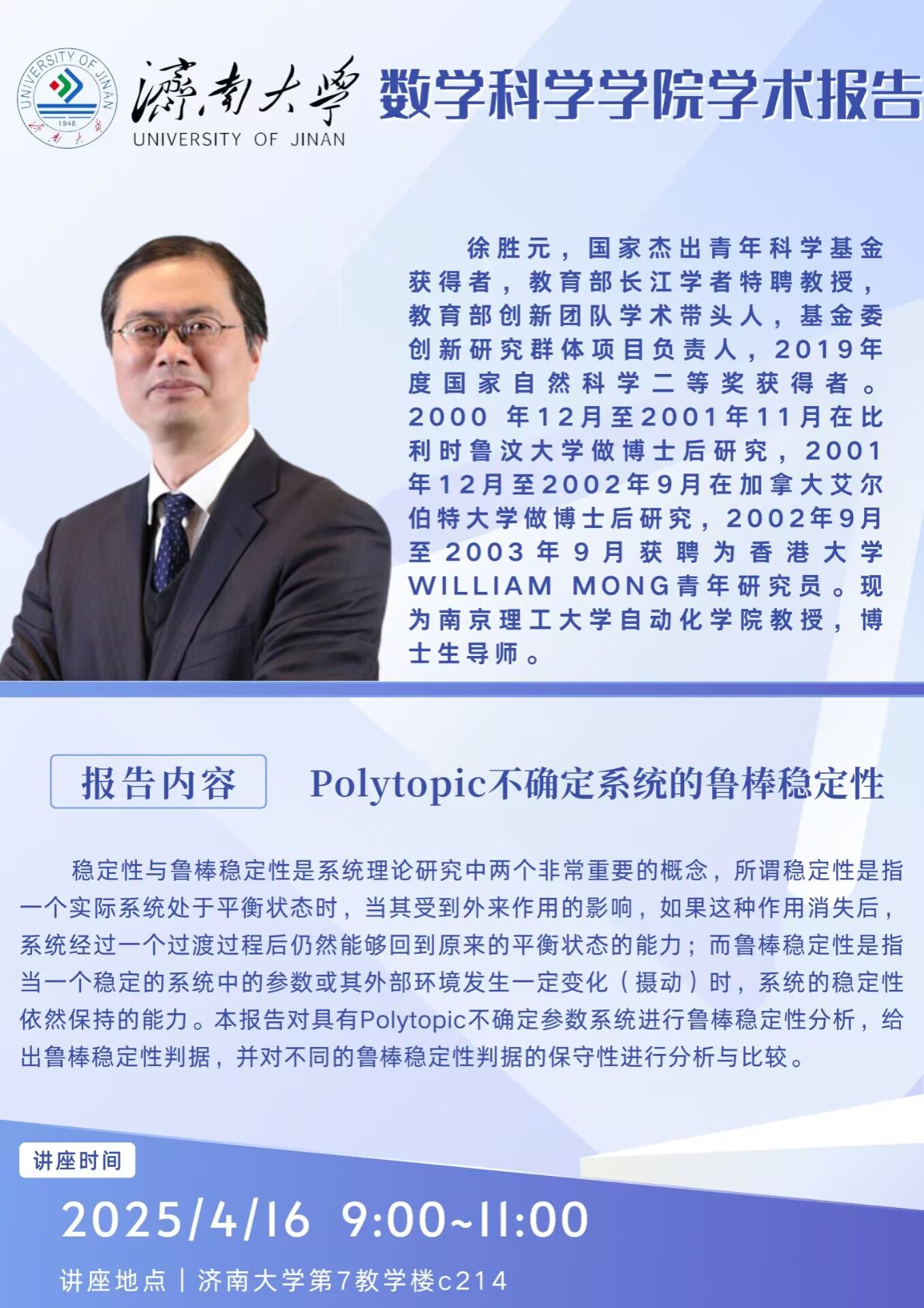 數學科學學院學術報告:Polytopic不確定系統(tǒng)的魯棒穩(wěn)定性