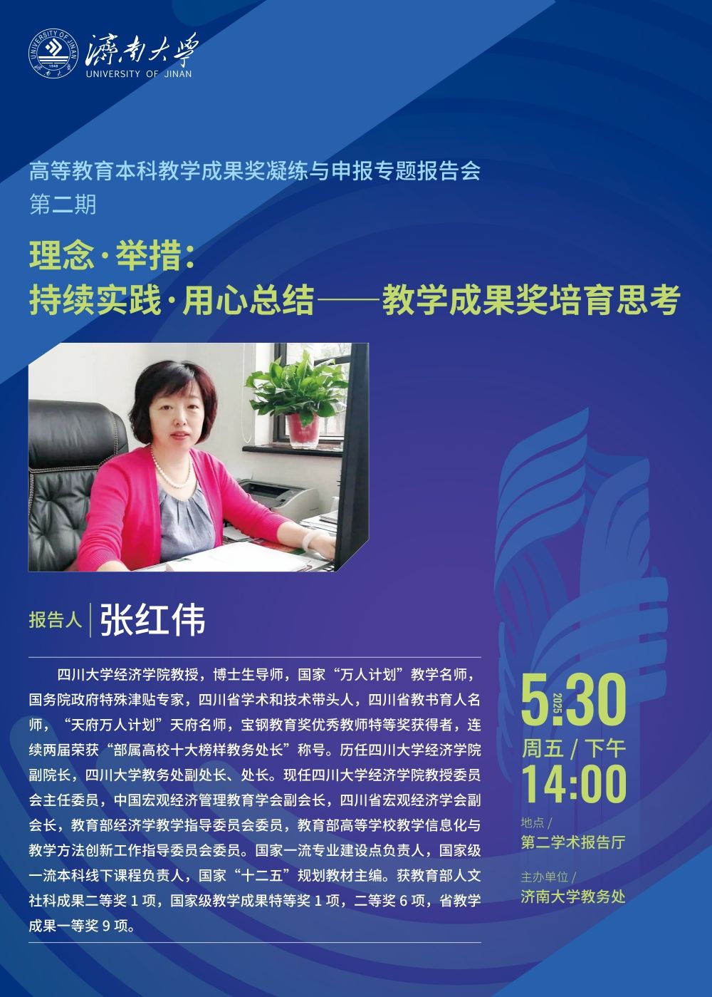 高等教育本科教學成果獎凝練與申報專題報告會(第二期)預(yù)告:理念·舉措:持續(xù)實踐·用心總結(jié)——教學成果獎培育思考