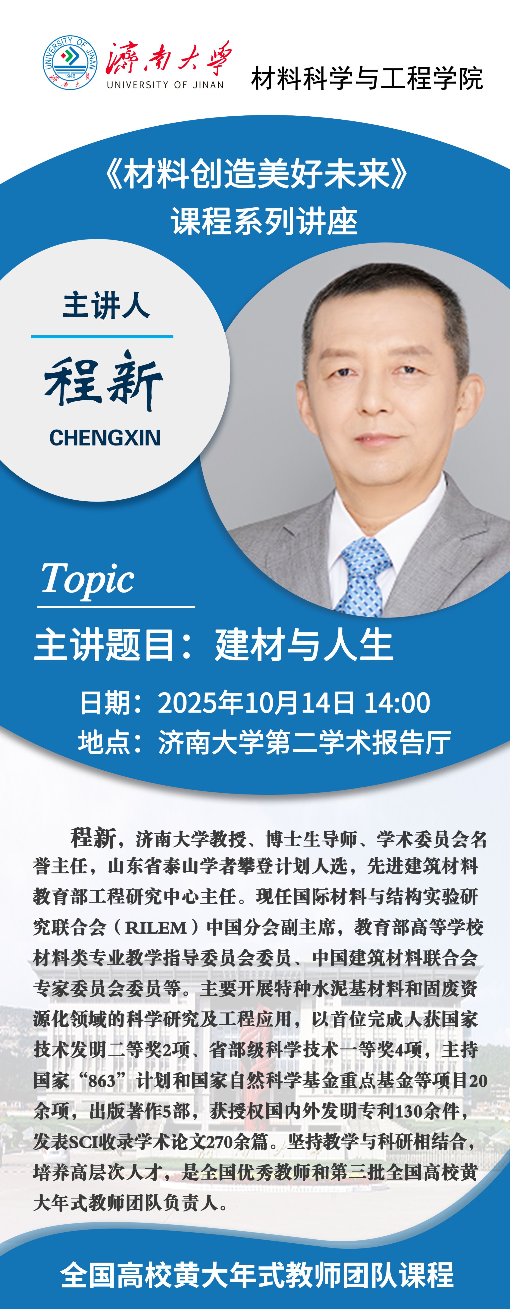 學術海報:《材料創(chuàng)造美好未來》課程系列講座——建材與人生