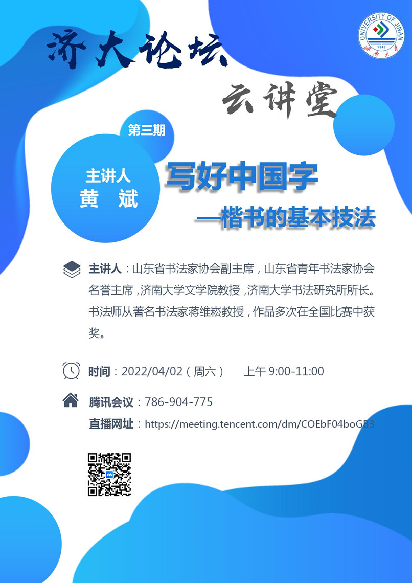 濟(jì)大論壇“云講堂”第三期:寫好中國(guó)字——楷書的基本技法
