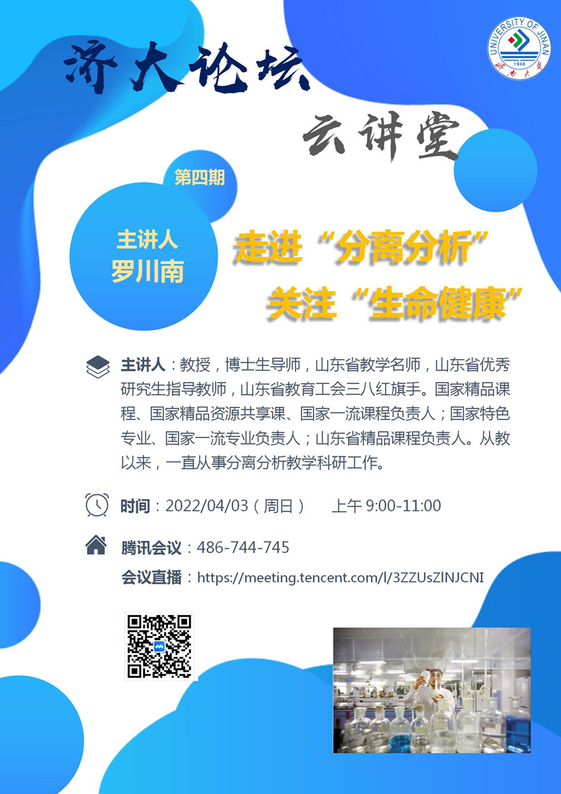 濟(jì)大論壇“云講堂”第四期:走進(jìn)“分離分析”,關(guān)注“生命健康”