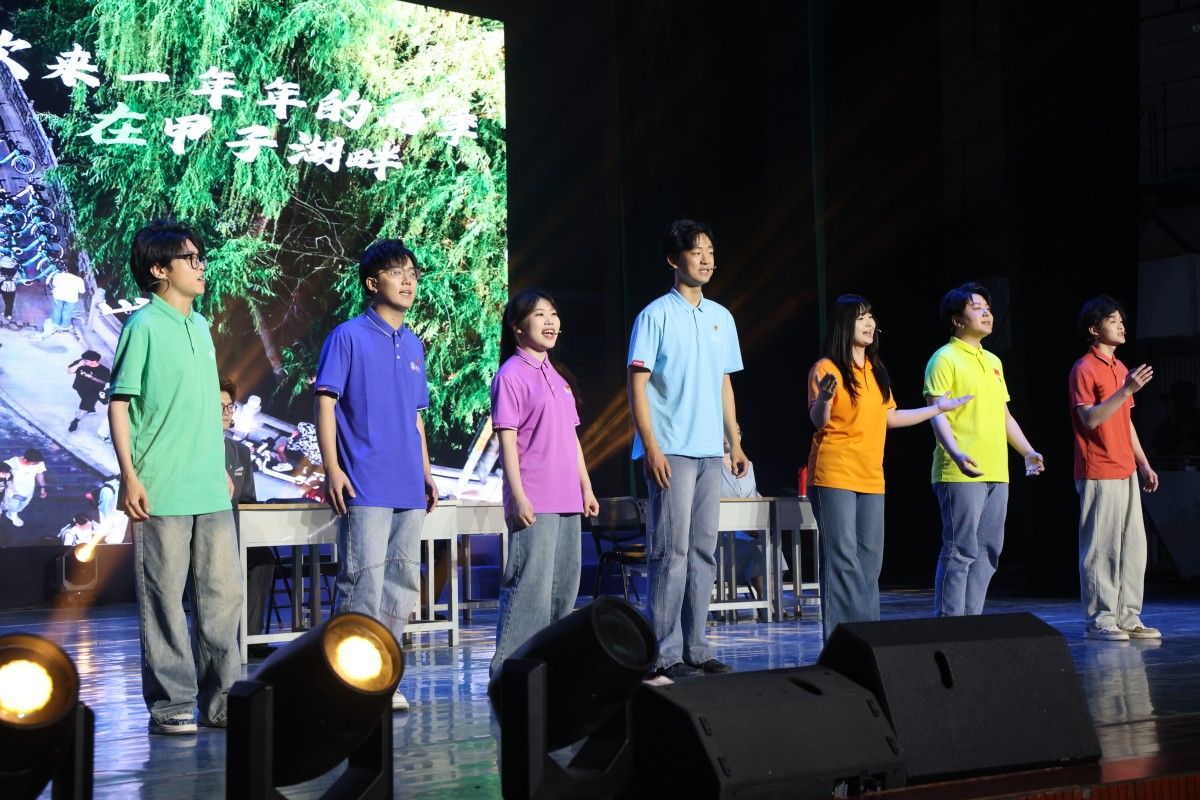 第一篇章主題為“賡續(xù)血脈·青春向黨”,旨在落實(shí)習(xí)近平總書記“用青年語講透大道理”的重要指示精神,以紀(jì)念中國人民抗日戰(zhàn)爭暨世界反法西斯戰(zhàn)爭勝利80周年為主題,聚焦波瀾壯闊的黨的抗戰(zhàn)史,團(tuán)干部、輔導(dǎo)員、商學(xué)院藝術(shù)團(tuán)學(xué)生等通過抗戰(zhàn)精神宣講和歌曲聯(lián)唱,從青龍山下出發(fā),沿著歷史長河溯流而上,通過熱血澎湃的宣講與歌聲,回望崢嶸歲月,沉浸式講述烽火歲月的感人故事;第二篇章主題為“校史鑄魂·青春接力”,以濟(jì)南大學(xué)校本文化宣講為主線,從傳奇抗日英雄孫象涵校長、“兩彈一星”功勛吳際霖教育長、炮兵專家周倫岐教授等堅(jiān)定的革命者、教育家到系統(tǒng)工程和航空航天技術(shù)專家宋健校友的風(fēng)采展示,從1948年的工業(yè)干部搖籃到1978年升為本科院校再到1980年挺進(jìn)省城的辦學(xué)經(jīng)歷,從升華廣場雕塑“永不褪色”的科研“隱秘成果”到校友捐建“冀東橋”的科教融合、產(chǎn)教融匯的“背后往事”,從治愈疲倦的甲子湖的落日到四季有景的滋蘭苑的風(fēng)景,從舜耕校區(qū)發(fā)展初期最初的漢語言文學(xué)、數(shù)學(xué)等基礎(chǔ)學(xué)科到覆蓋多專業(yè)的師范教育矩陣,從陪伴數(shù)代濟(jì)大人的“梅花館”的燈火通明到“鐘樓”和“綠泉廣場”定格的寶貴畢業(yè)印記,節(jié)目沉浸式、場景化闡釋了濟(jì)大歷史、濟(jì)大學(xué)人、濟(jì)大學(xué)子、濟(jì)大建筑等背后的感人故事,多角度、小切口、全景式挖掘?qū)W校歷史發(fā)展脈絡(luò)中的歷久銘心的特色文化育人素材,有故事、多情節(jié)、分層次展示濟(jì)南大學(xué)77年以來勠力同心、砥礪辦學(xué)的昂揚(yáng)風(fēng)貌,多維度彰顯濟(jì)大師生科創(chuàng)報(bào)國、服務(wù)社會(huì)的奮斗群像,引導(dǎo)師生知恩感恩、愛校榮校,在繼往開來中自覺傳承濟(jì)大精神;第三篇章主題為“強(qiáng)國有我·青春擔(dān)當(dāng)”,以學(xué)習(xí)習(xí)近平總書記對謝依特小學(xué)支教志愿者重要回信精神為統(tǒng)領(lǐng),編排呈現(xiàn)了《以青春的名義宣誓》《強(qiáng)國一代有我在》等青春五四特別節(jié)目,號召青年學(xué)生堅(jiān)定理想信念,厚植家國情懷,練就過硬本領(lǐng),發(fā)揚(yáng)奮斗精神,到祖國和人民最需要的地方發(fā)光發(fā)熱,為中國式現(xiàn)代化建設(shè)貢獻(xiàn)青春力量。