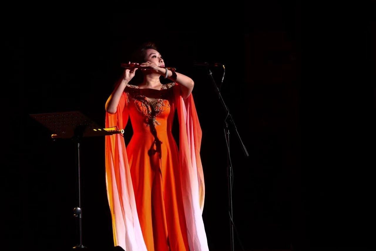 文藝演出以鼓樂合奏《龍騰虎躍》開場,鼓聲激昂,展現(xiàn)中華民族氣勢與力量;山東快板《小段集錦》以幽默韻律串聯(lián)生活趣事,逗樂觀眾;舞蹈《走近光里》頌揚蒙古族女性自信豁達,展現(xiàn)光的千變?nèi)f化。下半場藝術(shù)黨課以歌敘史,紅色經(jīng)典歌曲重溫黨史,感悟黨的偉大成就與理想信念,汲取奮進力量;《印象國樂·大曲》結(jié)合傳統(tǒng)音樂與現(xiàn)代技法,重塑敦煌古譜文化元素,彰顯大國輝煌文化,演出在《我的祖國》磅礴大氣的民族管弦樂合奏與合唱聲中圓滿落幕。整場演出匯集了中國古典音樂的蓬勃,中國民族舞蹈的剛勁,快板、傳統(tǒng)相聲的歡樂以及經(jīng)典紅色歌曲的民族氣節(jié)。