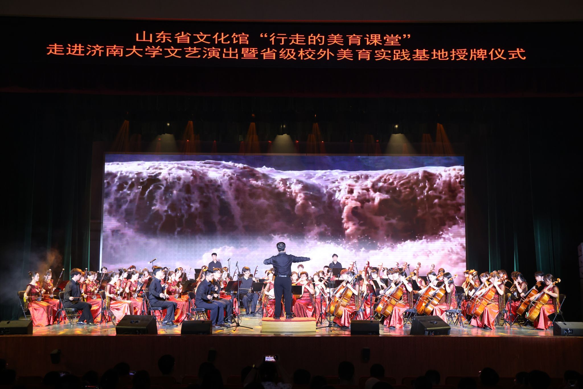 6月21日晚,山東省文化館“行走的美育課堂”走進濟南大學文藝演出暨省級校外美育實踐基地授牌儀式在濟大禮堂舉行,山東省文化館副館長王芹,濟南大學黨委常委、副校長王霞,以及各部門相關(guān)領(lǐng)導、學校師生共同出席此次活動。