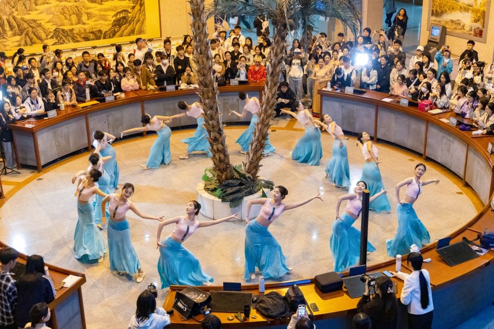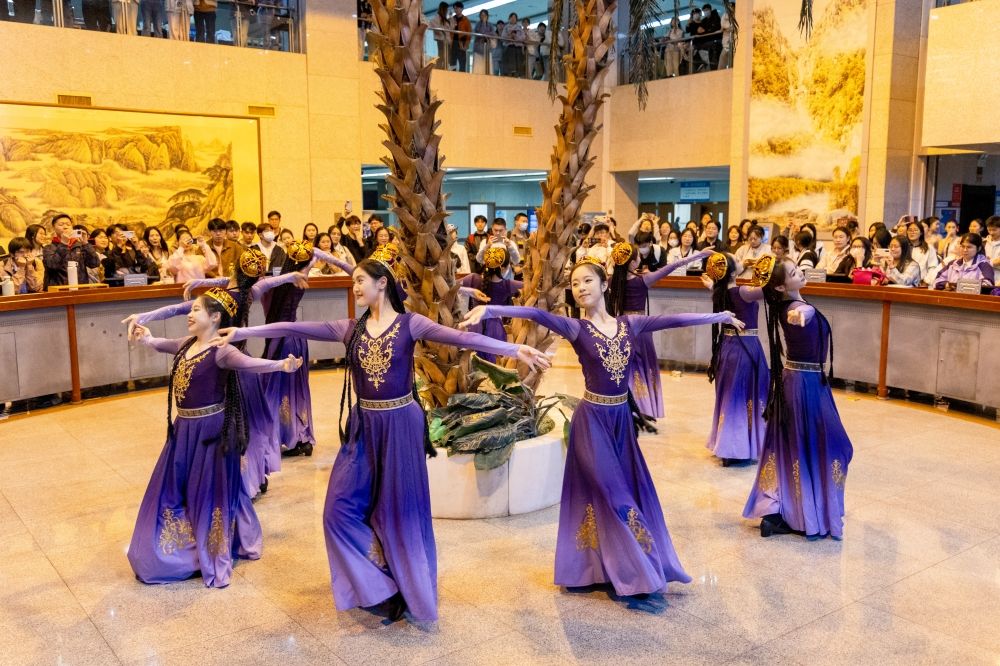 每周總有那么幾個(gè)晚上,一到閉館時(shí)分,或琴聲悠揚(yáng),或歌聲婉轉(zhuǎn),或舞姿蹁躚,一場(chǎng)場(chǎng)精心策劃、用心編排、形式多彩的閉館秀演出驚喜閃現(xiàn),為同學(xué)們一天緊張的學(xué)習(xí)生活畫上溫馨美好的句點(diǎn)。春之聲篇章鋼琴、大提琴與聲樂聯(lián)袂演繹《春之歌》《春天的芭蕾》《家》等經(jīng)典作品,描繪春天的溫暖與詩(shī)意;“翩遷四季·舞韻書香”舞蹈專場(chǎng),將《春之韻》的生機(jī)勃發(fā),《劍氣如虹》 的剛?cè)岵?jì),《草原隨想》的奔放自由表達(dá)得淋漓盡致,情感與技術(shù)的完美融合贏得滿堂喝彩;“詩(shī)韻流轉(zhuǎn)·山河入夢(mèng)”與“鍵叩書星·字躍靈穹”篇章中,《大魚》《傳奇》《青玉案·元夕》《世界贈(zèng)與我的》《哈瓦那舞曲》《怪物》等風(fēng)格各異的作品次第登臺(tái),精彩紛呈。圖書館閉館秀成為了許多同學(xué)結(jié)束一天學(xué)習(xí)的期待,每次演出總有眾多同學(xué)圍觀打卡,也有很多老師家屬校友特意前來。在寧?kù)o的閱讀氛圍中融入藝術(shù)元素,讓師生在藝術(shù)與知識(shí)的交融中感受心靈的舒展與美的浸潤(rùn),美輪美奐,相得益彰。