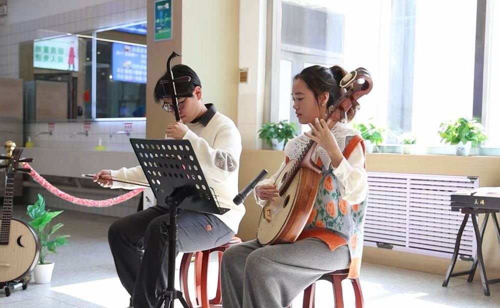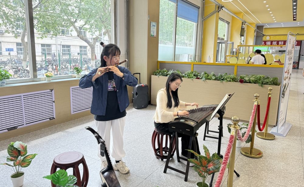 每周二、周五12:10-13:00,三食堂傳來陣陣悠揚(yáng)的民樂之聲,一場(chǎng)場(chǎng)小型民樂秀精彩呈現(xiàn)。中阮彈撥《金蛇狂舞》《滿江紅》;嗩吶吹響《九兒》《敢問路在何方》;二胡演繹《賽馬》《貝加爾湖畔》,還有竹笛版《鐵血丹心》,古箏版《美麗的神話》……從古典到現(xiàn)代,從婉轉(zhuǎn)到豪邁,十八般樂器,詮釋多種風(fēng)格。五四前夕還特別創(chuàng)排了《唱支山歌給黨聽》《我和我的祖國(guó)》《紅領(lǐng)巾列車奔向北京》等曲目,以傳統(tǒng)樂器奏響紅色旋律。通過自己的專業(yè)讓更多人領(lǐng)略到傳統(tǒng)民族樂器的魅力,為傳承弘揚(yáng)中華優(yōu)秀傳統(tǒng)文化、增強(qiáng)民族自豪感與文化自信略盡綿薄之力,參演的同學(xué)們倍感自豪。