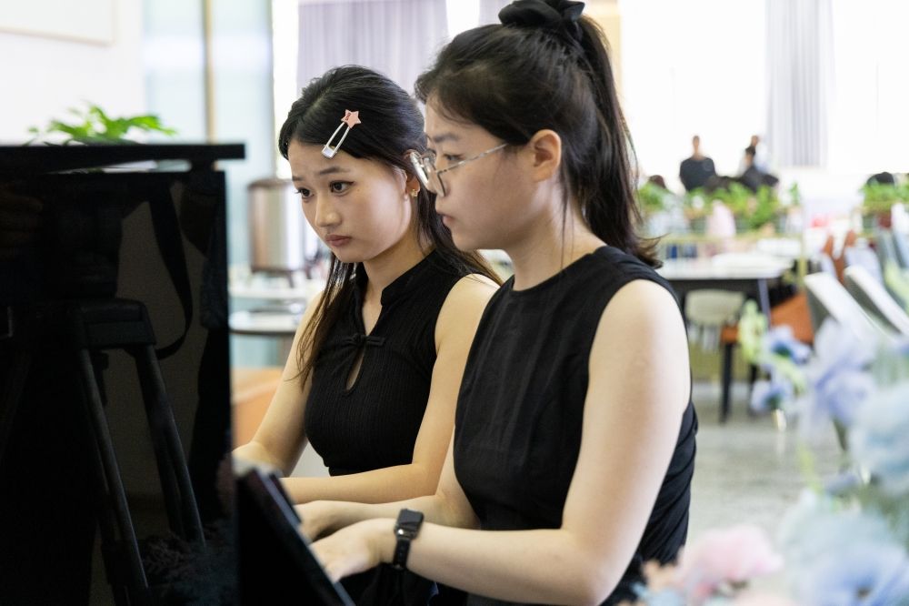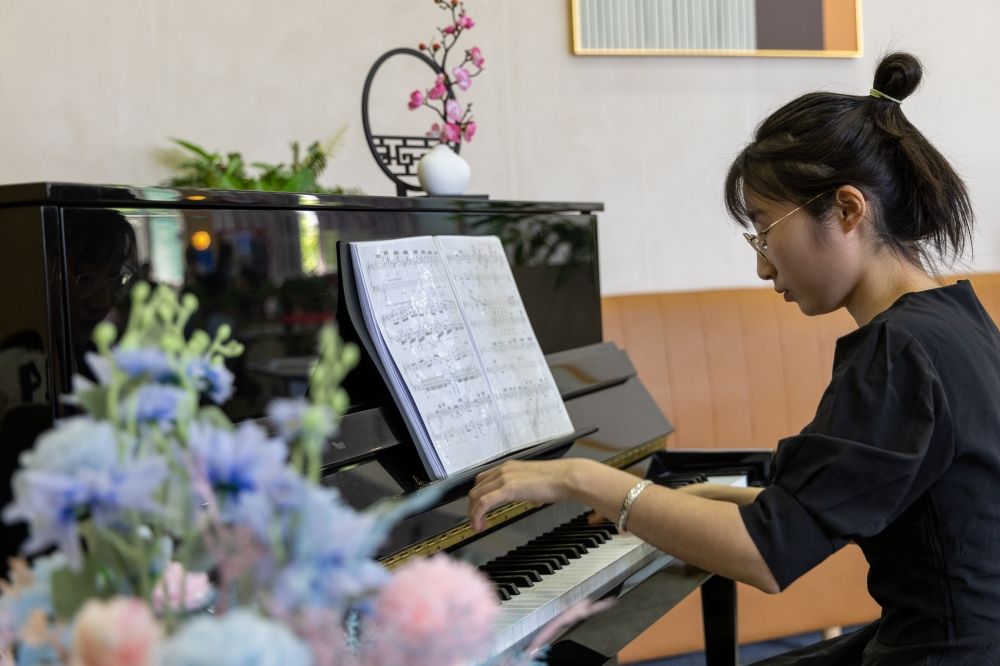 每天12:10-13:00,一食堂就化身為夢(mèng)幻的音樂殿堂,一場(chǎng)場(chǎng)鋼琴主題秀準(zhǔn)時(shí)上演?!秹?mèng)中的婚禮》《青春贊歌》奏響夢(mèng)幻青春主題;《貝加爾湖畔》《愛樂之城》回味經(jīng)典電影浪漫;《千與千尋》《天空之城》帶你穿梭動(dòng)漫的奇幻世界,天天有新曲,曲曲皆悠揚(yáng)。鋼琴主題秀以優(yōu)美的旋律傳遞音樂的魅力,讓師生在潛移默化中提升鑒賞水平,培養(yǎng)浪漫情懷和對(duì)美好生活的熱愛。