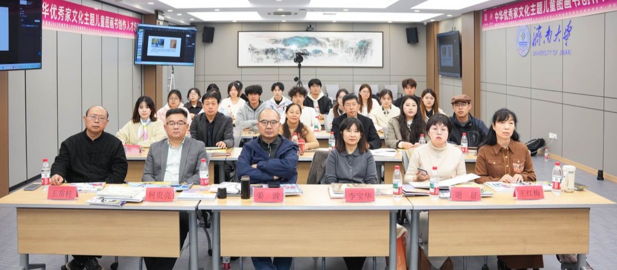 11月22日,國(guó)家藝術(shù)基金2025年度藝術(shù)人才培訓(xùn)資助項(xiàng)目——“中華優(yōu)秀家文化主題兒童圖畫書創(chuàng)作人才培養(yǎng)”成果展開幕式、結(jié)業(yè)匯報(bào)答辯暨研討會(huì)系列活動(dòng)在濟(jì)南大學(xué)舜道藝術(shù)館、藝美空間及第五學(xué)術(shù)報(bào)告廳相繼舉行,集中展示了該項(xiàng)目在推動(dòng)中華優(yōu)秀家文化創(chuàng)造性轉(zhuǎn)化與創(chuàng)新性發(fā)展方面所取得的成果。濟(jì)南大學(xué)黨委常委、副校長(zhǎng)黃加棟,黨委常委、宣傳部部長(zhǎng)盧旺,山東工藝美術(shù)學(xué)院造型藝術(shù)學(xué)院院長(zhǎng)劉寧,項(xiàng)目負(fù)責(zé)人、濟(jì)南大學(xué)美術(shù)與設(shè)計(jì)學(xué)院副教授劉東濤以及校內(nèi)外專家、師生代表參加活動(dòng)。開幕式由濟(jì)南大學(xué)美術(shù)與設(shè)計(jì)學(xué)院黨委書記陳春鋒主持。